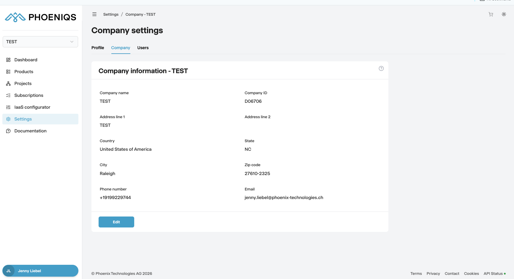 Company information can be updated or changed at any time. You can also add additional companies to your profile, by either selecting the company dorpdown on the left hand side, or using the button on the upper right corner.